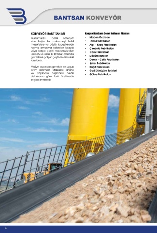 KONVEYÖR BANT TANIMI Kauçuk Bantların Genel Kullanım Alanları