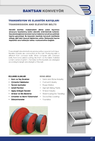 Elevatör bantları, malzemelerin dikine yukarı taşınması PRODUCTS